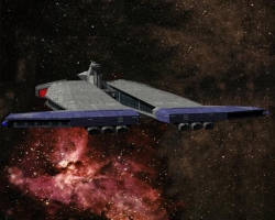 Mounting heavier armor, shielding, and weaponry, these ships take enemy fire much better then their lighter cousins. Mounting two capital-class missile launchers in their bows with five rounds each, and five more designed to fire the bomber-sized missiles for a nearly limitless number on board, supported by twenty photon turrets into all arcs this ship can actually be used in fleet engagements after launching her ten small craft squadrons. Based on their cost and time to build however, this is not considered standard operating procedure.