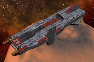 Mounting two capital-class missile bays and ten avenger-class launchers in the bow, as well as one to each of the other arcs accompanied by six photon turrets, this class of ship is not considered a true capital class warship, but instead is more of a raider or convoy protector. It was designed by a Cronyl team during the early days of the Alkari War after a "representative" of Duron Family "gave" them the avenger technology and did well when the fighting got hot in the war.