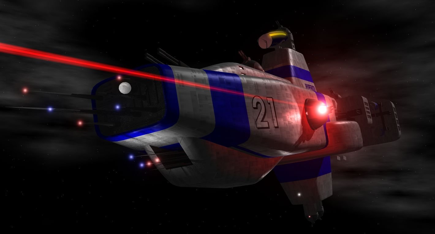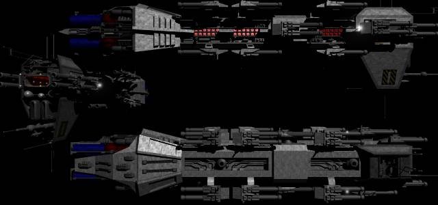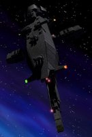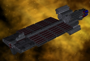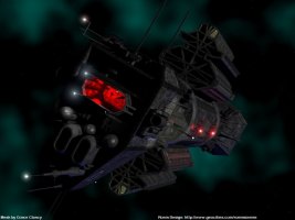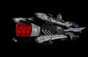 A post Alkari-War design, this ship was designed with integral gravity plating so never had to be rebuilt as the other battle line ships have been. Mounting four heavy photon cannons buried in the bow and two more firing aft, seven double-barreled electromagnetic launch rail turrets capable of firing bomber class missiles or slugs in all directions, and two forward firing ship-killer missile bays, they are a sight to behold in battle. A pod capable of firing six of the new avenger class missiles at a time is afixed on the starboard and port sides of each of these ships, along with an ammunition storage bay capable of holding sixty missiles for each pod. The standard weapons are backed up by twenty photon turrets in each arc and a landing bay capable of transporting a squadron of small craft.
