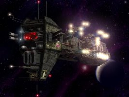 Mounting heavier armor, shielding, and weaponry then their smaller cousins, these ships were designed during to the Alkari War to support the battle lines in warp assualts. Actually mounting two ship-killer missile launchers in their bows with five rounds each, and five more designed to fire the bomber-class missiles for a nearly limitless number on board, this class can actually be used in fleet engagements after launching her ten small craft squadrons. Based on cost and time to build however, this will not be considered standard operating procedure. Thirty photon turrets in each arc provide good anti-fighter cover.