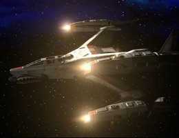 A post-Trex war design of corvette first built in 2414 to act as escorts for the main battleline, they mount a single photon cannon for anti-warship fire in the nose and a single electromagnetic launch rail gun running the length of the hull for point-blank anti-warship fire or for close orbital bombardment. The corvette's secondary weapons array is five photon turrets planted in each arc. Designed for anti-warship uses, they are minimally effective against fighters, but tend to surprise warships with their ability to quickly penetrate shield grids, especially in large numbers.