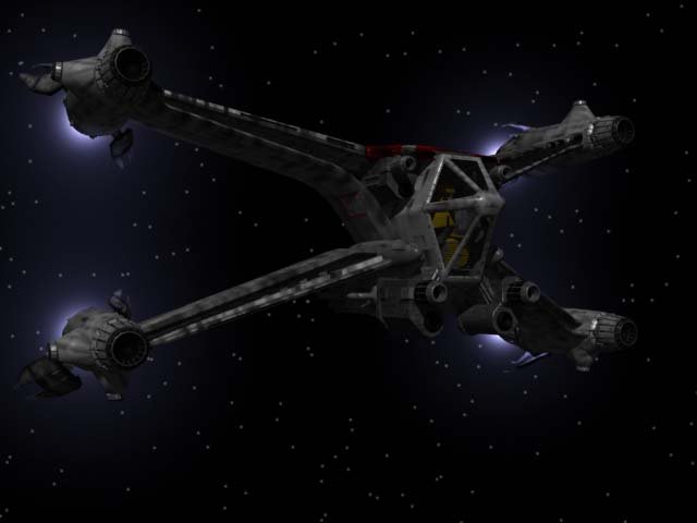 The smallest jump-capable craft in the Confederation Navy, they carry four bomber-class photon cannons and have a single modular weapons mount (HWM) for other heavy weapons. Recent anti-grav drive units have made them capable of manuevering in atmosphere though they are best fighting in space. The Mark 10 version allows for the use of a single heavy or two light equipment packs.
