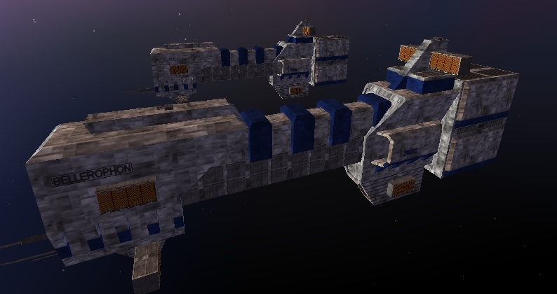 The most powerful ship in the fleet, the Stone Wind was originally built using captured Alkari technology during the Alkari War and was used to anchor the Duron Battle Fleets when they took to the offensive during the last years of the war. Like other Alkari War vintage designs, the Stone Wind was not originally equipped with artificial gravity. Unlike many others, she was fitted with a rotational section capable of generating gravity via spin. The modern Stone Wind and her compatriots have locked these spinning sections in place and have built gravity plating into the decks. Because of the orientation of the old spinning sections, the transition between them and the rest of the ship often takes practice to get just right. One of the more interesting ideas used in this design is modularity and full featured ejection systems. Should the ship ever be lost, the habitation sections and the primary weapons pods on each side of the central core are all designed to separate from the ship and move away from it with small maneuvering thrusters. This setup makes it easy to replace damaged sections and also in theory increases survivability of the crew. As no ship of this class has ever been lost though, many question the wisdom of such a design. Each weapons pod mounts four capital class missile launchers, two above and two below for a total thirty-two launchers along with eighty rounds of ammunition, that can fire missiles in all directions, and one heavy photon cannon designed to fire into the broadside arcs. The engine section mounts another four heavy photon cannons designed to fire at anything behind them, and the command section mounts eight for forward bombardment. Ten avenger class missile launchers with a thousand rounds of ammunition support the forward firepower, and two launch bays capable of carrying a small craft squadron each are housed there as well. She also has a defensive grid that can project fire from fifty small photon turrets for anti-fighter use in all directions.