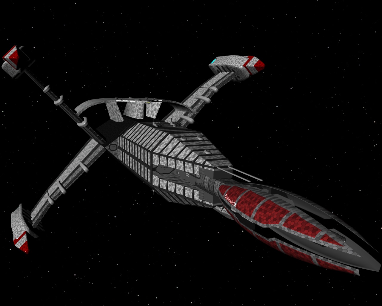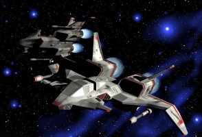 Capable of reconfiguring for atmospheric flight, the Ravens carry two pulse photon lasers attached to a turret underneath the cockpit, two pulse lasers mounted on the sides of the turret for extra range of firepower, and two fighter-class photon cannons buried in the fuselage.